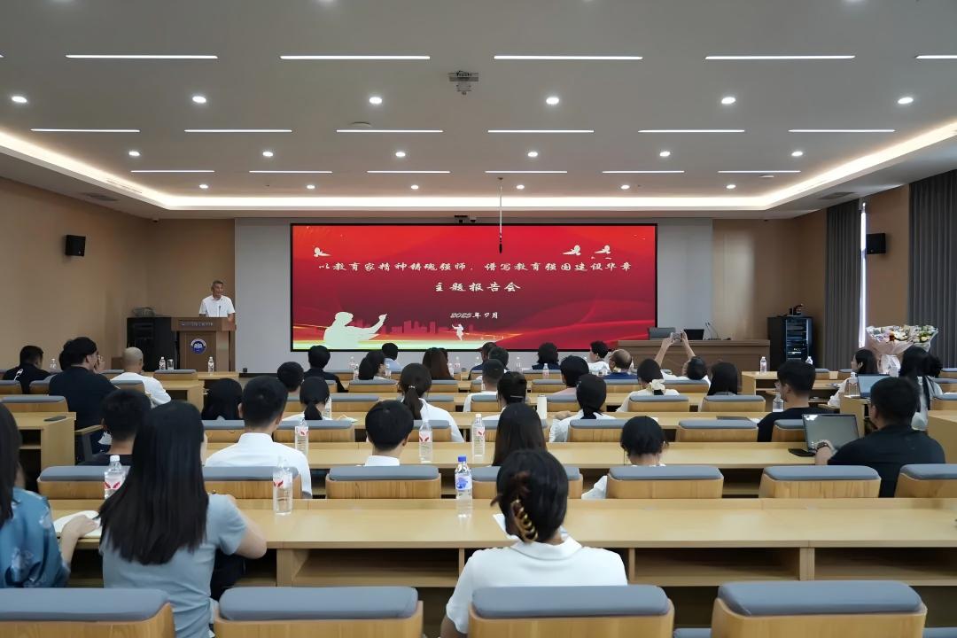 此次报告会既是学校深入贯彻落实习近平总书记关于教育的重要论述的实际行动,也是激励广大教师践行教育家精神、投身教育强国建设实践的重要动员。闫海指出,弘扬教育家精神,是习近平总书记对广大教师提出的殷切期望,是党和国家对教师队伍建设提出的明确要求,更是广大教师应当自觉肩负起的光荣使命与时代重任。他希望广大教师以教育家精神为引领,争做信念坚定的“筑梦人”、勇做立德树人的“大先生”、甘做仁爱奉献的“守护者”、善做教育改革的“实干家”,为培养德智体美劳全面发展的社会主义建设者和接班人不懈奋斗。